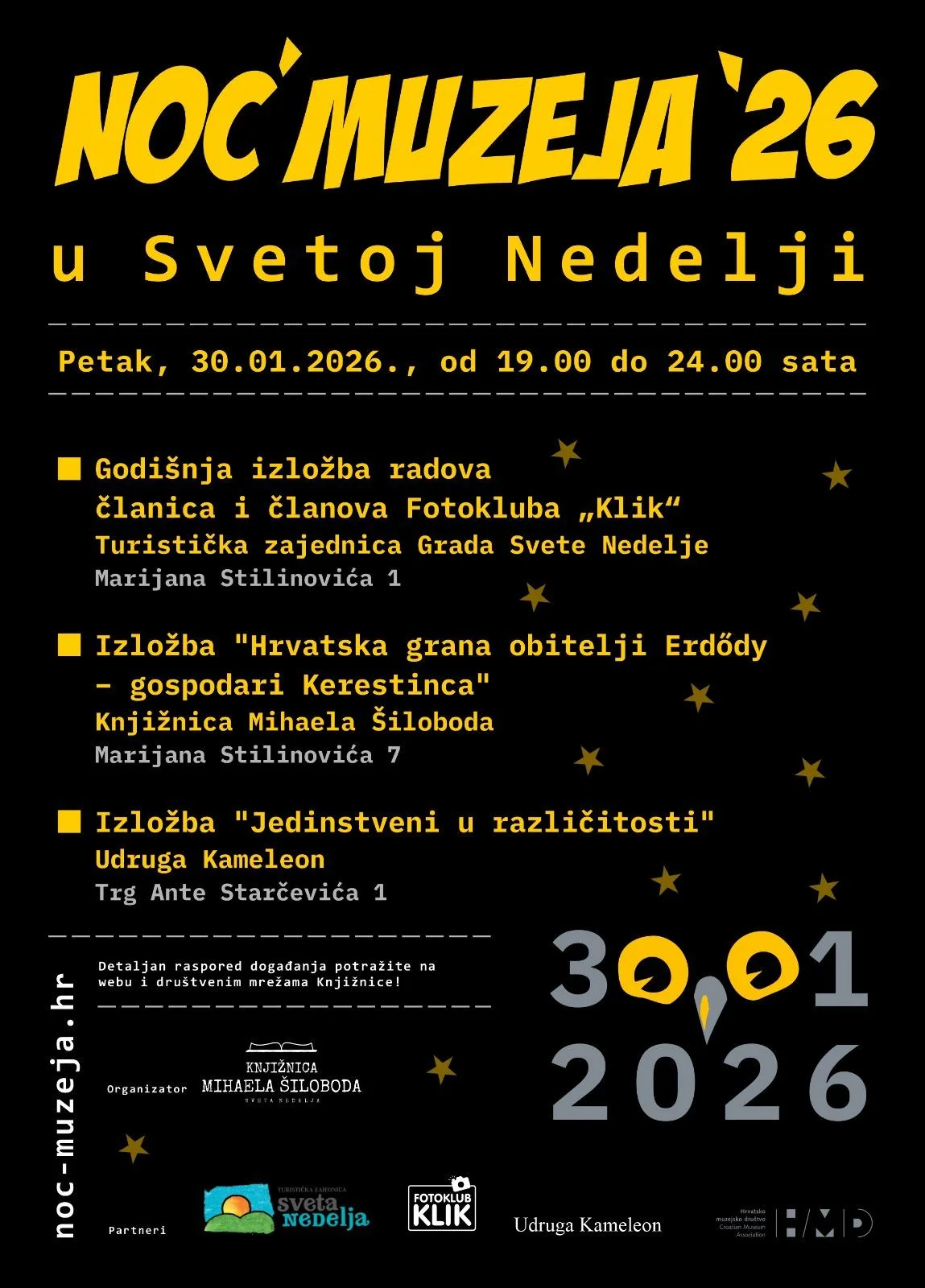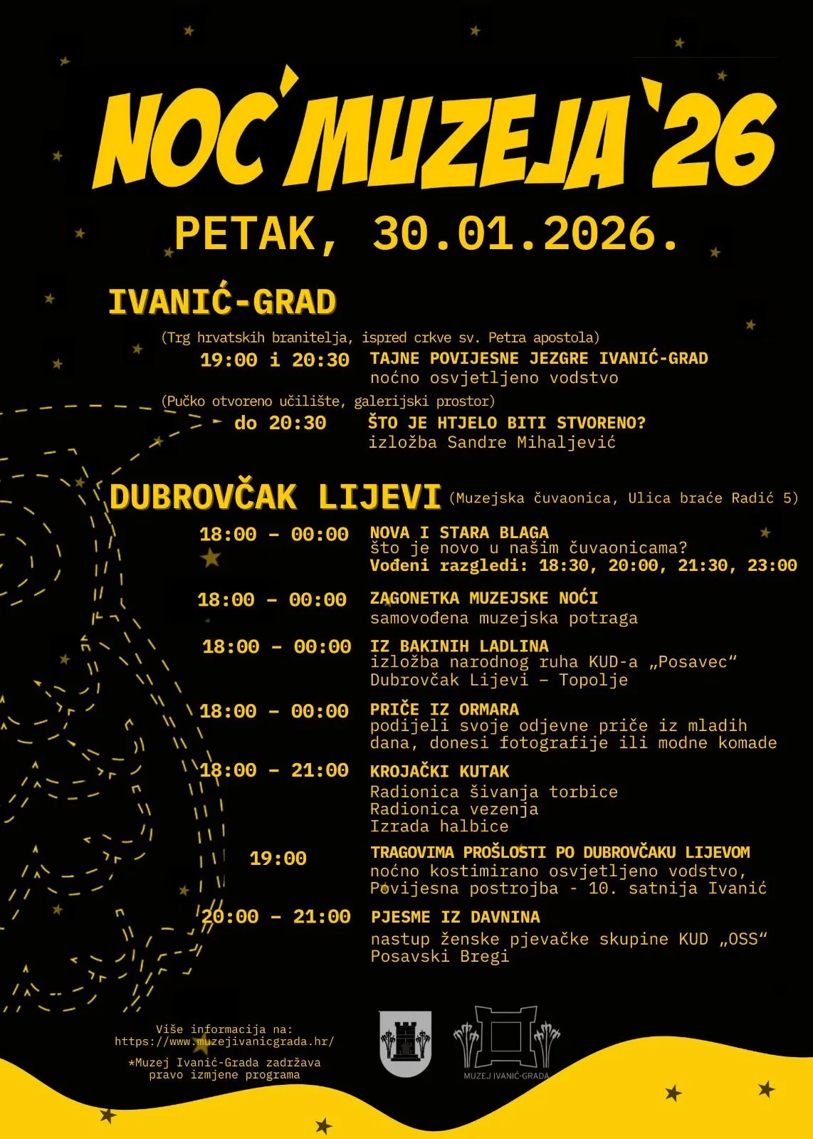Napomena: satnice i detalji programa ovise o organizatorima pojedinih lokacija, stoga se preporučuje provjera informacija na službenim stranicama ustanova prije dolaska.